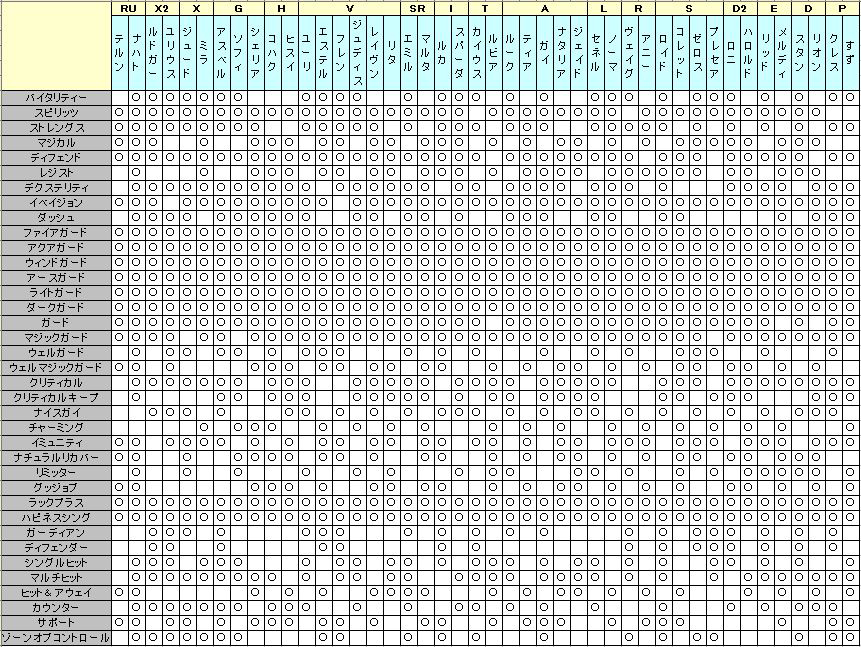 プレセアがストレングスとディフェンド無し、スピリッツとマジカル有りになっているが逆。